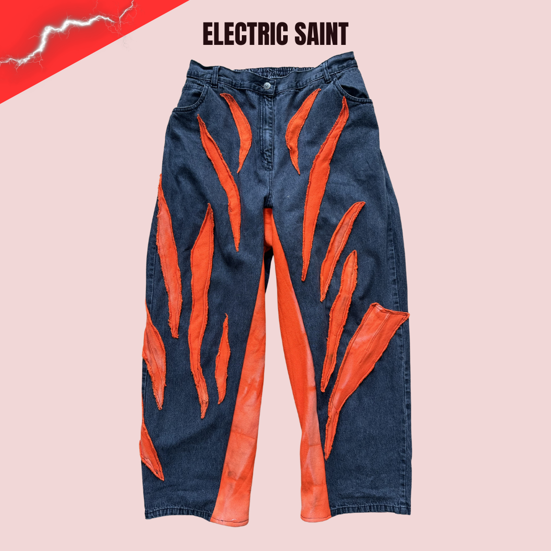 Custom Denim Jeans – Up Cycled Tiger Stripe Baggy Oversized Streetwear